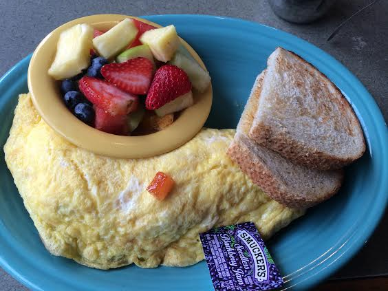 The next morning (yesterday morning,) we got up leisurely and again, found a place to grab a coffee and a bite, this time settling on Winona’s. They offer 12 different versions of Eggs Benedict, which is one of my favorite breakfasts ever, but since I’d just had it the day before, and I’d consumed ALL the food in the past few days, I went with a healthier option – a veggie lovers omelet, fruit, and some sourdough.